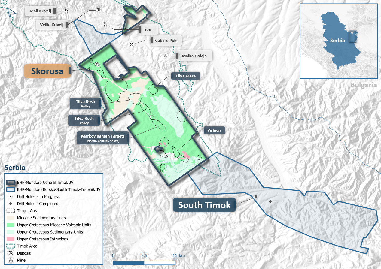 April 16, 2026, Vancouver, BC - Mundoro Capital Inc. (TSXV: MUN | OTCQB: MUNMF | www.mundoro.com) ("Mundoro" or the "Company") is pleased to announce the commencement of drilling at the high-priority Skorusa East target within the Central Timok project (the "Project"), located within the Timok Magmatic Complex ("Timok") in Serbia. The Project is part of the previously announced BHP-Mundoro option earn-in agreement¹ where BHP is sole funding the exploration activities.